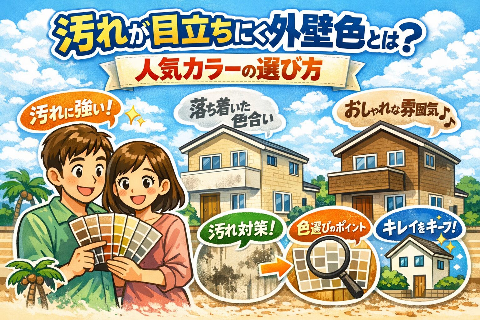 今回は、汚れが目立ちにくい外壁色の特徴と、人気カラーの選び方についてわかりやすく解説します。