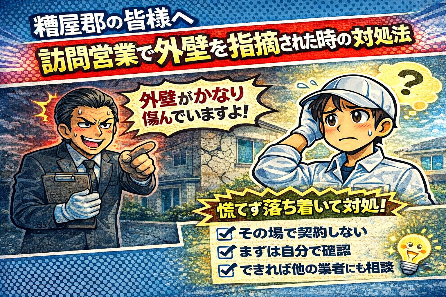 今回は、訪問営業で外壁を指摘された時に、どう対応すればよいのかを分かりやすくお話しします。