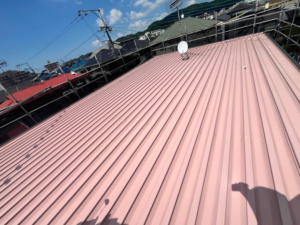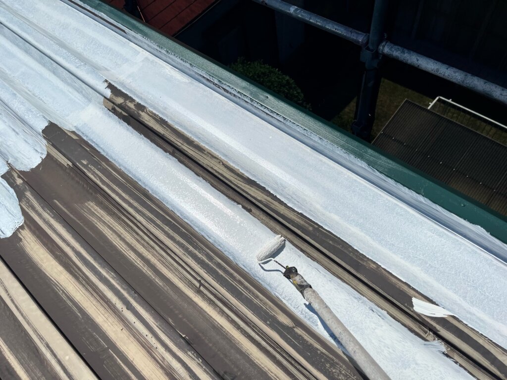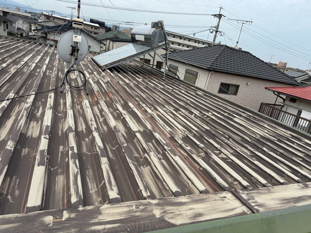 屋根は塗膜の劣化により退色・剥離が進み、素地が露出して防水性が低下している状態でした。
