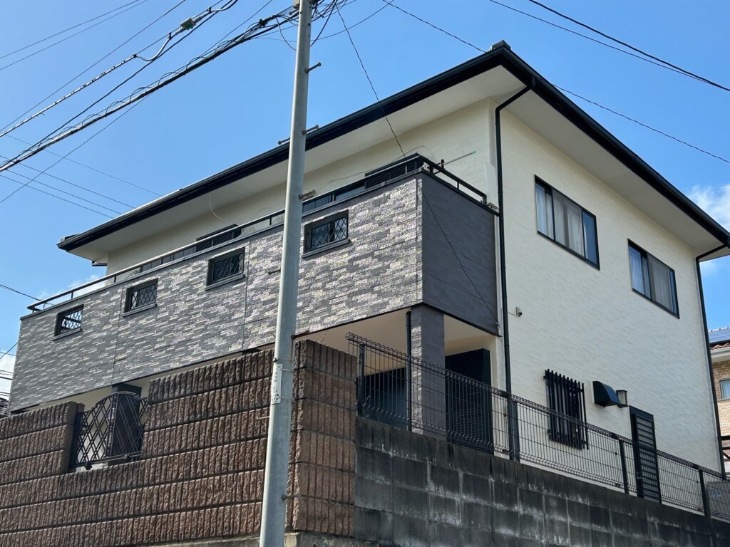 今回は福岡県糟屋郡志免町の戸建住宅にて外壁付帯部塗装工事を行いました。
